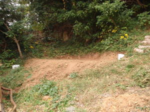 西側斜面の段々畑があまりにも日当たりが悪くて野菜が育ちません。 なので、畑をつぶして敷地面積拡大してみました。 |