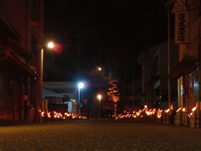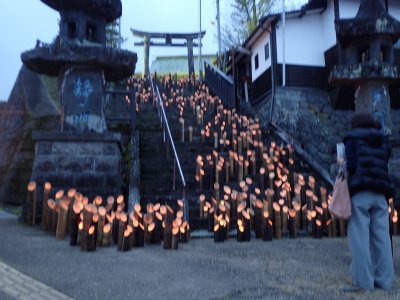 | 町の中の照明も最小限の暗さなので竹灯籠の明かりがとても幻想的です。 | ![]() ![]() |