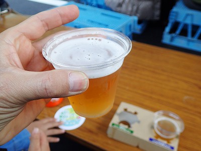 ALE」を使ったビールとフレッシュホップ「IBUKI」を使ったビールです。 量的にはちょっと物足りないけど、ただ酒なので美味しい♪ |