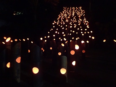 | 竹灯籠がイイ感じに灯ってきました。 |