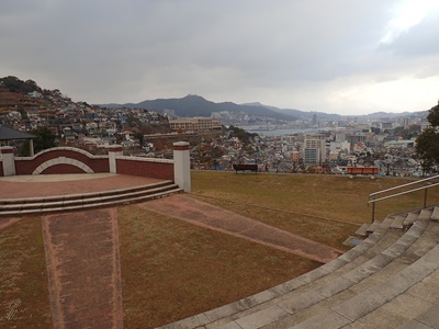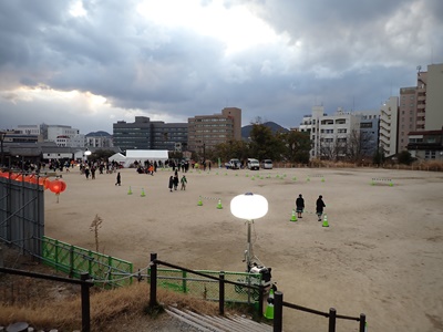 | そして翌日、ノゾムが風邪の後遺症でジンマシンが出て痒そうだったので、道の駅の近くにあった皮膚科へ受診させようとしたら拒否られました。とりあえず、道の駅でミカンを買ってから9時半ごろに出発しました。 その後、13時半に長崎市に到着。マックスバリュー南長崎店で食材の買い出しの後、川原大池キャンプ場でテント設営。いつも以上に風が強いです。キャンプ場には強風に煽られているテントが1張りだけありました。なので、今回はタープを張らずにテントのみで過ごします。 冬の嵐なので超寒いです。 出雲近隣公園には15:45に到着、ここから歩いてお祭り会場へ向かいます。 |