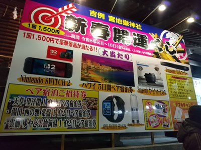 大人気の開運みくじは一回1,500円!さすが、宮地嶽神社の景品は豪華です。