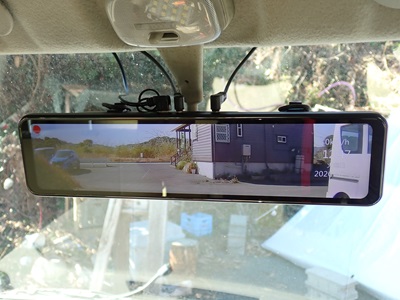 あとはドラレコをミラーに固定するだけ。 電池ケースもゴムバンドで一緒に固定します。 |